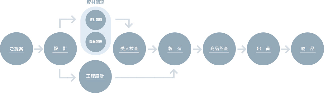 注文書一枚ですべての部材調達から完成品出荷まで対応します。ODM、OEMといった総合的なご提案から、製造過程の一部工程のお手伝いまで、お客様のニーズに合わせて様々な形態で生産活動のお手伝いが可能です。